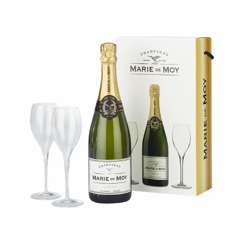 This Marie de Moy Grand Cru gift set comes with two elegant glasses that instantly upgrade any evening. The kind of bottle that makes an ordinary night feel like a celebration