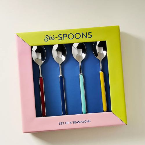 Here’s a very unique gift for a very unique person—these Après Ski stainless steel teaspoons. Ordinary spoons? Not here. Sleek, shiny, and perfectly sized, they make every cup of tea or coffee feel just a little more special.